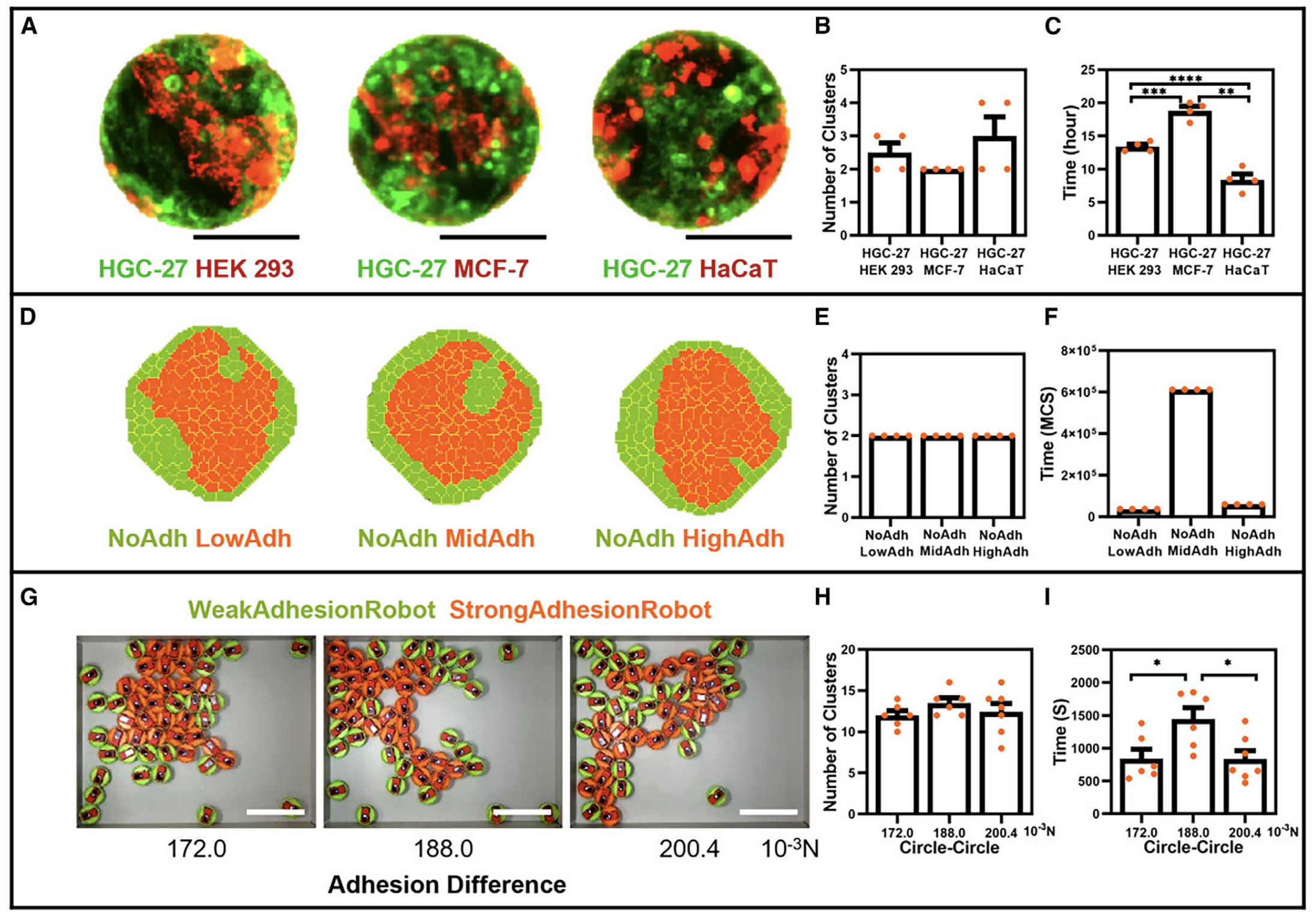 粘附差异水平与机器人集群(细胞集群)分选速度存在非线性关系