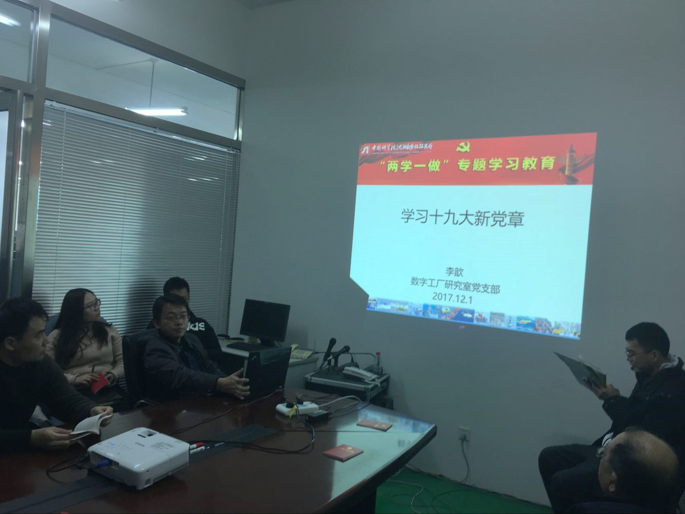 按照中国科学院沈阳自动化研究所党委工作部署,12月1日,数字工厂研究室党支部召开党员大会,开展了十九大精神学习活动,重点对新党章进行了学习。