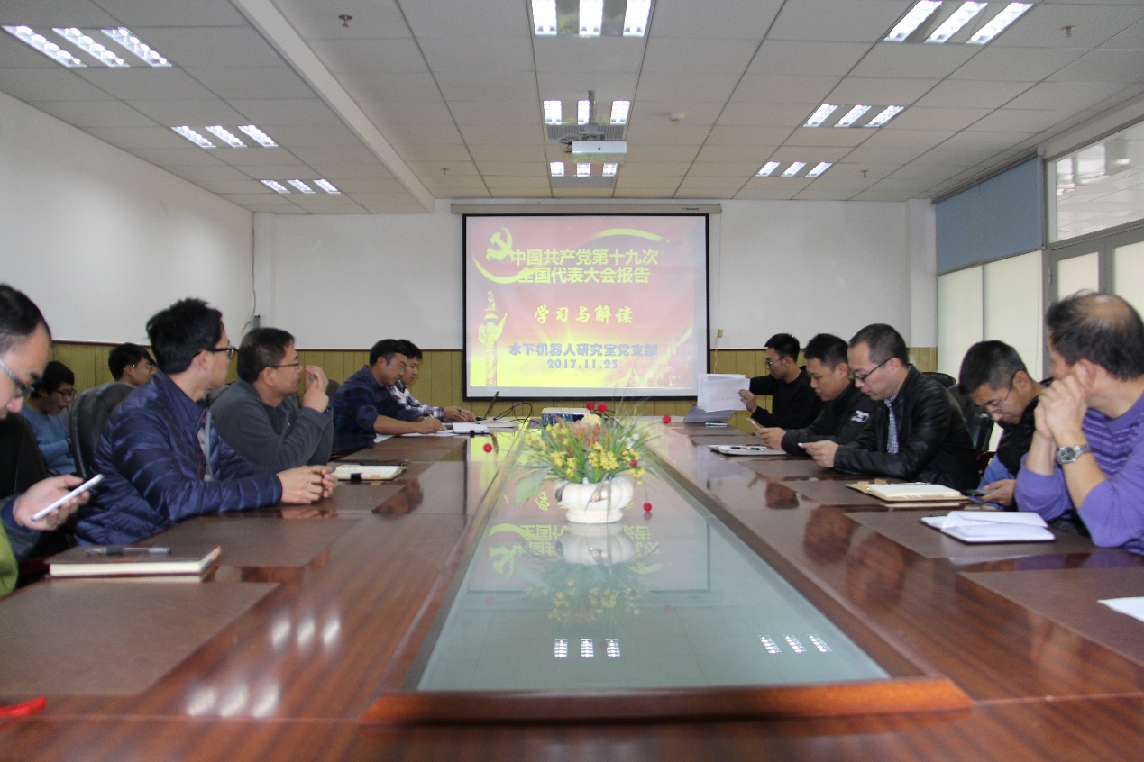 近日,为深入宣传贯彻党的十九大精神,水下机器人研究室党支部组织开展了十九大专题学习活动。会议由党支部组织委员张奇峰主持。
