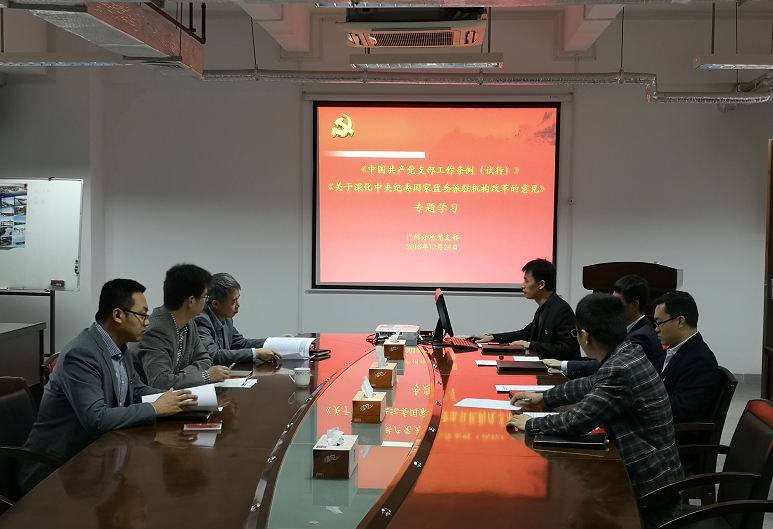 12月24日,广州分所支部组织全体支部党员集中学习了《中国共产党支部工作条例(试行)》、《关于深化中央纪委国家监委派驻机构改革的意见》专题学习。支部书记苑明哲主持会议。