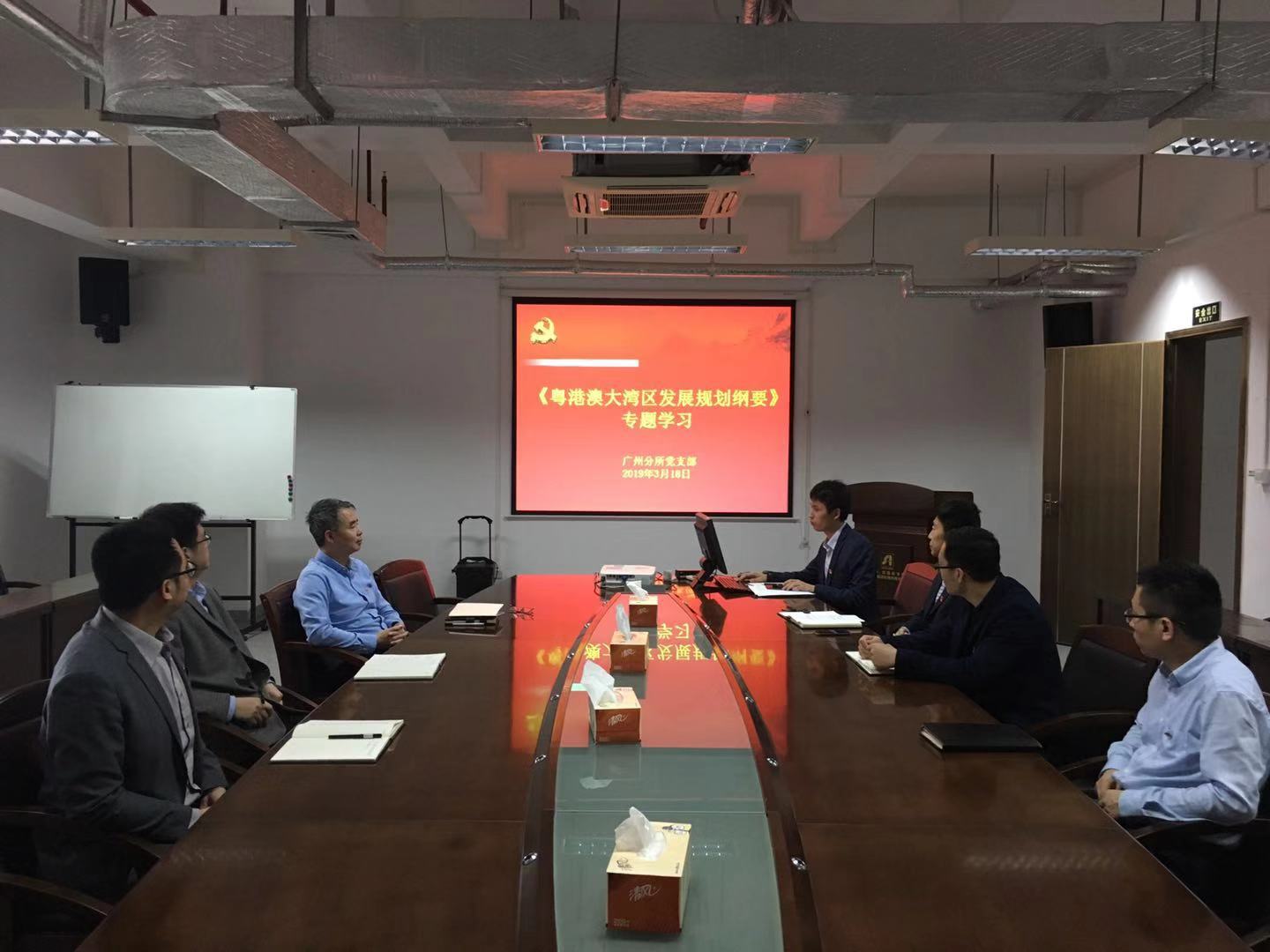 近日,中国科学院沈阳自动化研究所广州分所党支部组织全体支部党员集中学习了《粤港澳大湾区规划纲要》,党支部书记苑明哲主持会议。