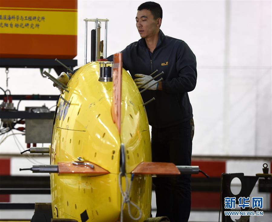 4月22日,工作人员对“潜龙二号”进行维护保养。 当日,我国自主研发的水下机器人“潜龙二号”回到沈阳,由研发人员进行常规维护保养,“潜龙二号”日前成功对西南印度洋脊上的热液活动区开展试验性应用探测。 “潜龙二号”是国家863计划“深海潜水器技术与装备”重大项目课题之一,为4500米级自主水下机器人(AUV)。从去年12月16日出发,到今年3月4日完成潜器验收试验和试验性应用。“潜龙二号”共完成16次下潜,顺利通过现场验收,探测面积达218平方公里,最大深度超过3200米。新华社记者李钢摄 |