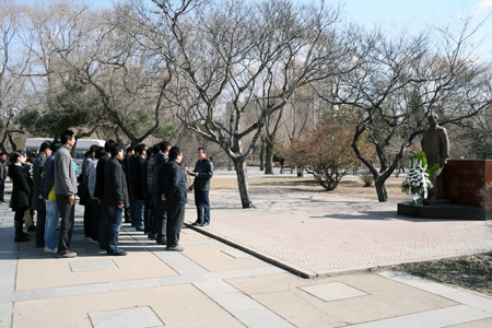 为了加强沈阳自动化研究所创新文化建设,弘扬传承蒋新松精神,按照所党委工作安排,在蒋新松院士逝世15周年之际,所党办、团委组织部分新职工和研究生代表于3月31日上午前往沈阳市劳动公园,在蒋新松院士塑像前举行纪念活动。党委书记桑子刚参加了纪念活动并讲话。纪念活动由党办主任周船主持。