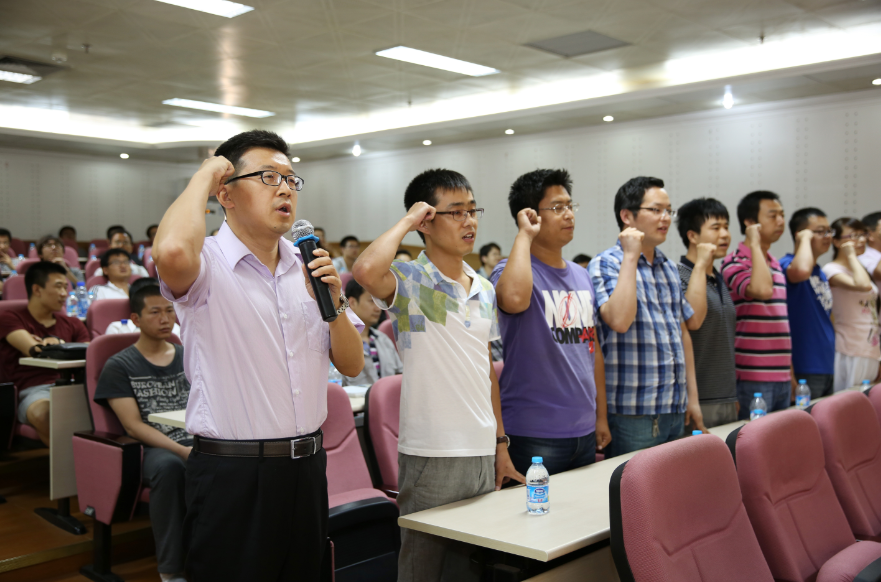 党办主任孙雷带领新发展的19名预备党员宣誓