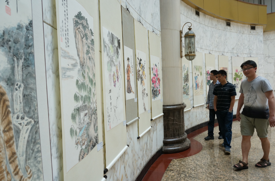 所内人员欣赏展出的绘画作品 为庆祝新中国成立65周年,宣传建国以来特别是改革开放以来沈阳自动化所取得的科研成果,反映研究所职工的业余文化生活,按照辽宁省直机关工会的指示和研究所党委的工作部署,所工会在7月1日至4日,举办了《中国梦•改革梦•我的梦》为主题的美术、书法摄影展览活动,取得了良好的教育意义和宣传效果。 本次活动由所工会举办,得到了广大职工、离退休老同志和研究生的大力支持和积极参与。共征集到书法绘画作品30余幅,摄影作品56幅。书法绘画作品主要以描绘祖国大好山河为主题,兼有花鸟、动物作品,摄影作品则侧重人物、风景。参展作品展现了沈阳自动化所职工良好的艺术修养和爱国荣所、歌颂美好生活的情怀。 组委会组织专家对参展作品进行了评选。入选作品在研究生公寓大厅进行了展览,吸引了众多职工、学生驻足观赏。本次展览的举办,不仅为职工搭建了一个展示自己特长的舞台,活跃了研究所的文化生活,为沈阳自动化所文化建设增添了靓丽的一笔,渲染了浓厚的爱国氛围,成为研究所一道亮丽的风景,同时有力的促动了沈阳自动化所职工为祖国、为了科学事业不懈奋斗的工作热情。(工会)