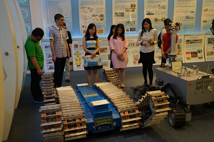 参观科技成果展馆  座谈会现场  团队合影 6月15日下午,上海交通大学船舶海洋与建筑工程学院2016暑期实践团队访问了中国科学院沈阳自动化研究所。沈阳自动化所人事教育处、水下机器人研究室、海洋信息技术装备中心相关人员接待了上海交通大学师生一行。 此次走访由船建学院学生党总支副书记薛云云带队,共8名船舶与海洋工程、力学等专业的优秀博士、硕士学生参加。来访期间,实践团参观了沈阳自动化所科技成果展馆和水下条件实验室,与研究所科研人员现场交流研讨,深入了解了沈阳自动化所的发展历史、研究领域和科研成果。 参观结束后,上海交通大学师生一行与沈阳自动化所相关人员进行了座谈交流。会上,实践团观看了沈阳自动化所的宣传片,人事教育处工作人员介绍了沈阳自动化所近几年的发展成就、未来发展趋势与职业发展空间。水下机器人研究室副研究员田宇、海洋信息技术装备中心周立猛从科研角度,为团员们详细介绍了沈阳自动化所在水下机器人方面的研究成果和未来发展方向。报告内容丰富全面,受到师生们的欢迎。期间,实践团团员们与田宇、周立猛和在沈阳自动化所工作的两位校友提问互动,就水下机器人相关技术及自身发展的问题进行了热烈交流。(人教处) |