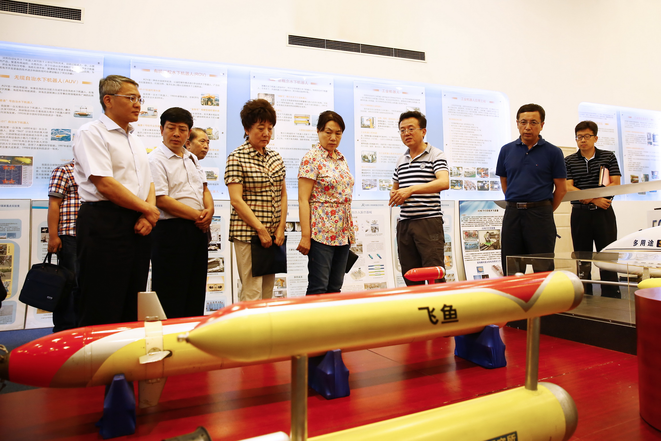 检查组一行参观沈阳自动化所科技成果展馆 7月14日,辽宁省人大常委会组成检查组赴中国科学院沈阳自动化研究所检查。检查组组长、辽宁省人大常委会党组副书记、副主任赵国红,辽宁省人大常委会委会委员、教科文卫委员会主任委员张晨,在辽宁省政府、沈阳市政府有关部门领导的陪同下调研座谈。 座谈会上,沈阳自动化所党委书记兼副所长桑子刚向检查组一行介绍了研究所在科研攻关、成果转化、人才培养等方面的基本情况,汇报了中国科学院机器人与智能制造创新研究院的建设进展。检查组一行认真听取了介绍,询问了研究所在水下机器人试验基地的建设、人才培育与研究生教育等方面的情况。赵国红表示,沈阳自动化所已经成为辽宁的一张名片,应给予更有力支持,帮助协调处理所遇到的困难。 辽宁省科技厅党组书记、厅长刘晓东,辽宁省知识产权局局长李长春,辽宁省科协副主席朱玉宏,沈阳市人大常委会副主任徐璐,沈阳市政府秘书长连茂君等参加了座谈。调研期间,检查组一行还参观了沈阳自动化所科技成果展馆、工业物联网与智能电网实验室,听取了相关科技成果的介绍。 |