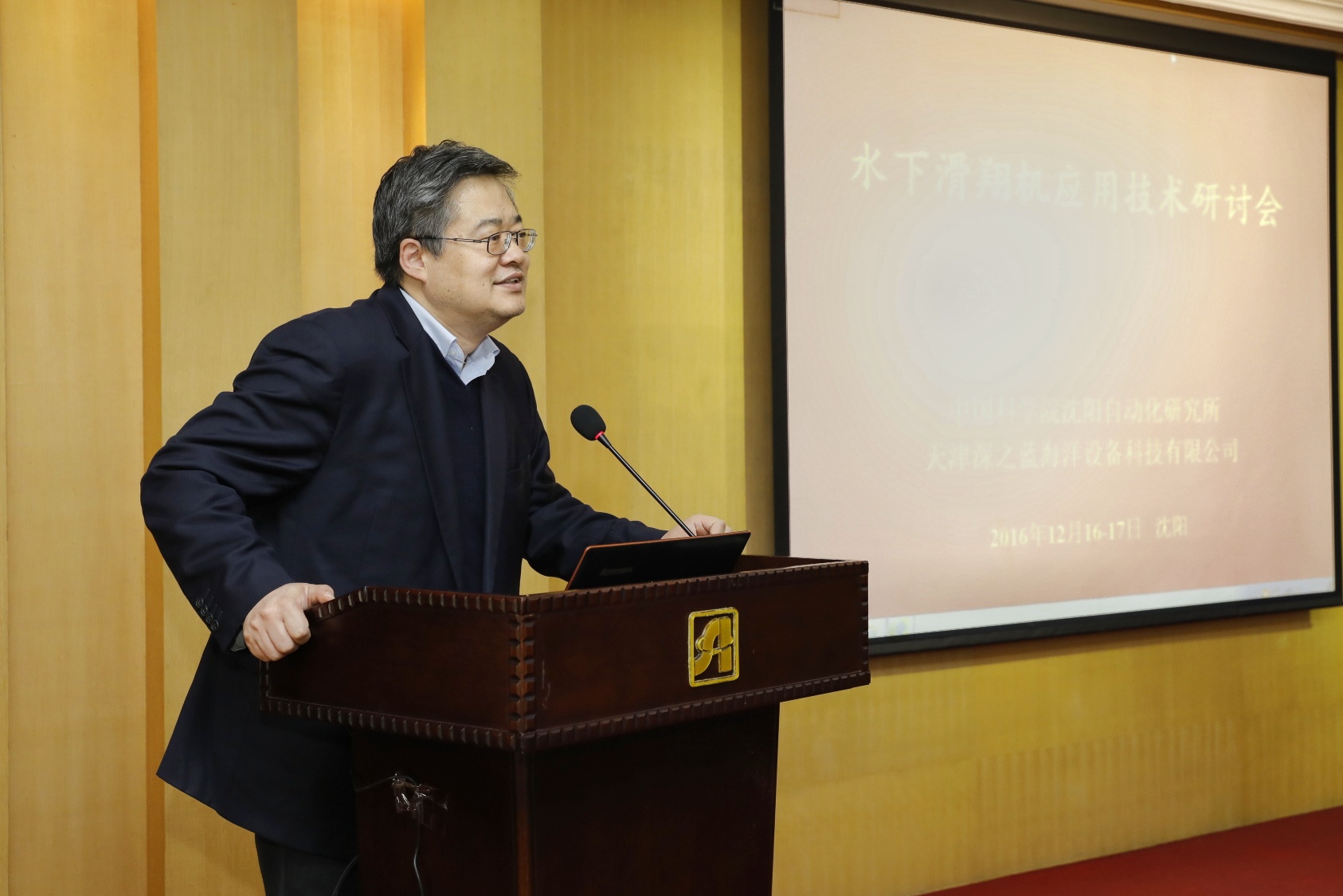 12月17日,由中国科学院沈阳自动化研究所主办,天津深之蓝海洋设备科技有限公司承办的第一届水下滑翔机应用技术研讨会在沈阳举行。来自国家海洋局、中国科学院、国内外科研院校等32家单位百余名专家和学者出席会议,交流水下滑翔机技术与应用。沈阳自动化所所长于海斌,深之蓝总经理魏建仓等出席会议。