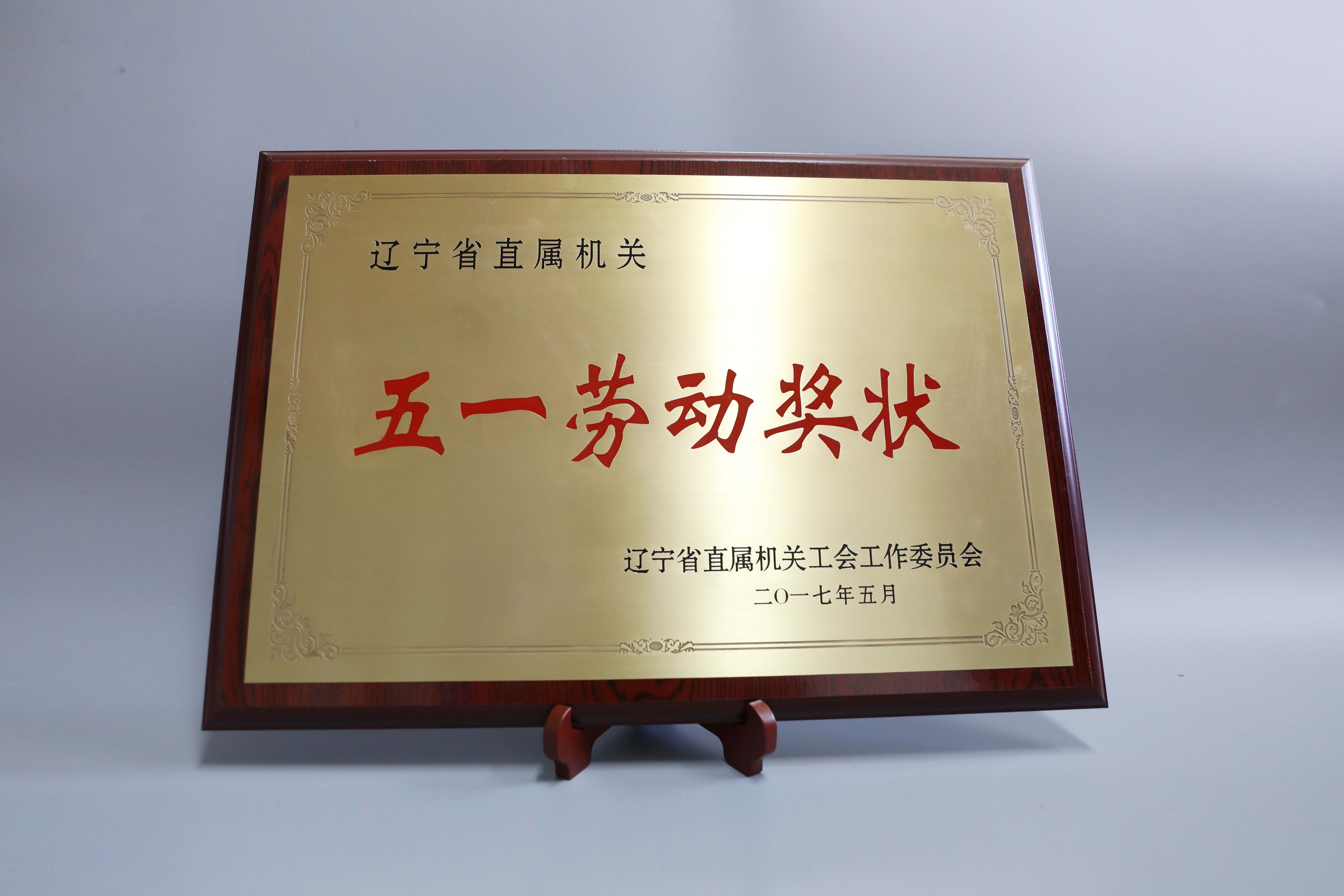 辽宁省直机关五一劳动奖状证书