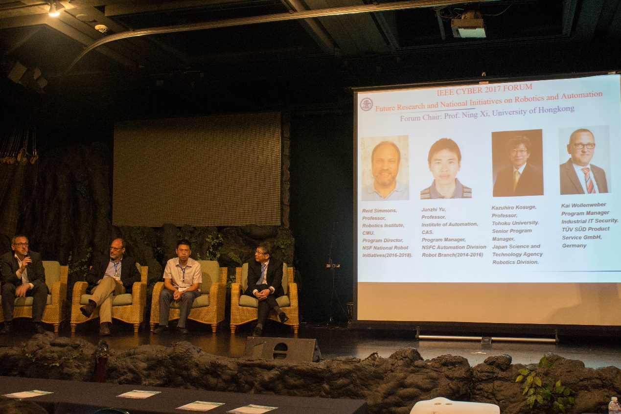 7月31日至8月4日,由IEEE主办、中国科学院机器人与智能制造创新研究院(筹)承办的第七届“IEEE自动化、控制与智能系统中的网络技术”国际会议(International Conference on CYBER technology in Automation, Control, and Intelligent Systems, IEEE-CYBER 2017)在美国夏威夷召开,来自国内外知名高校和科研机构近300人参加了此次会议。