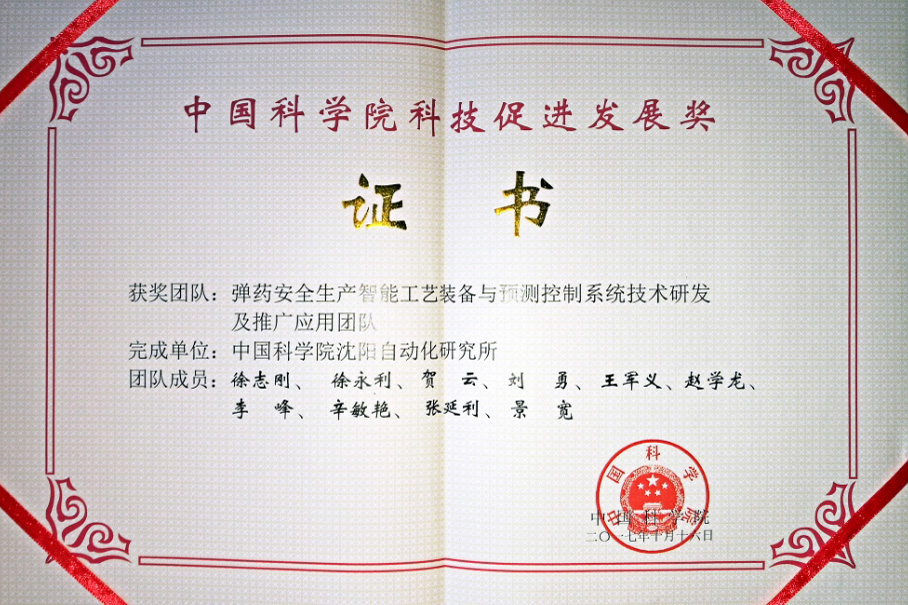 沈自所“弹药智能制造成套装备科研团队”获2017年中科院科技促进发展奖