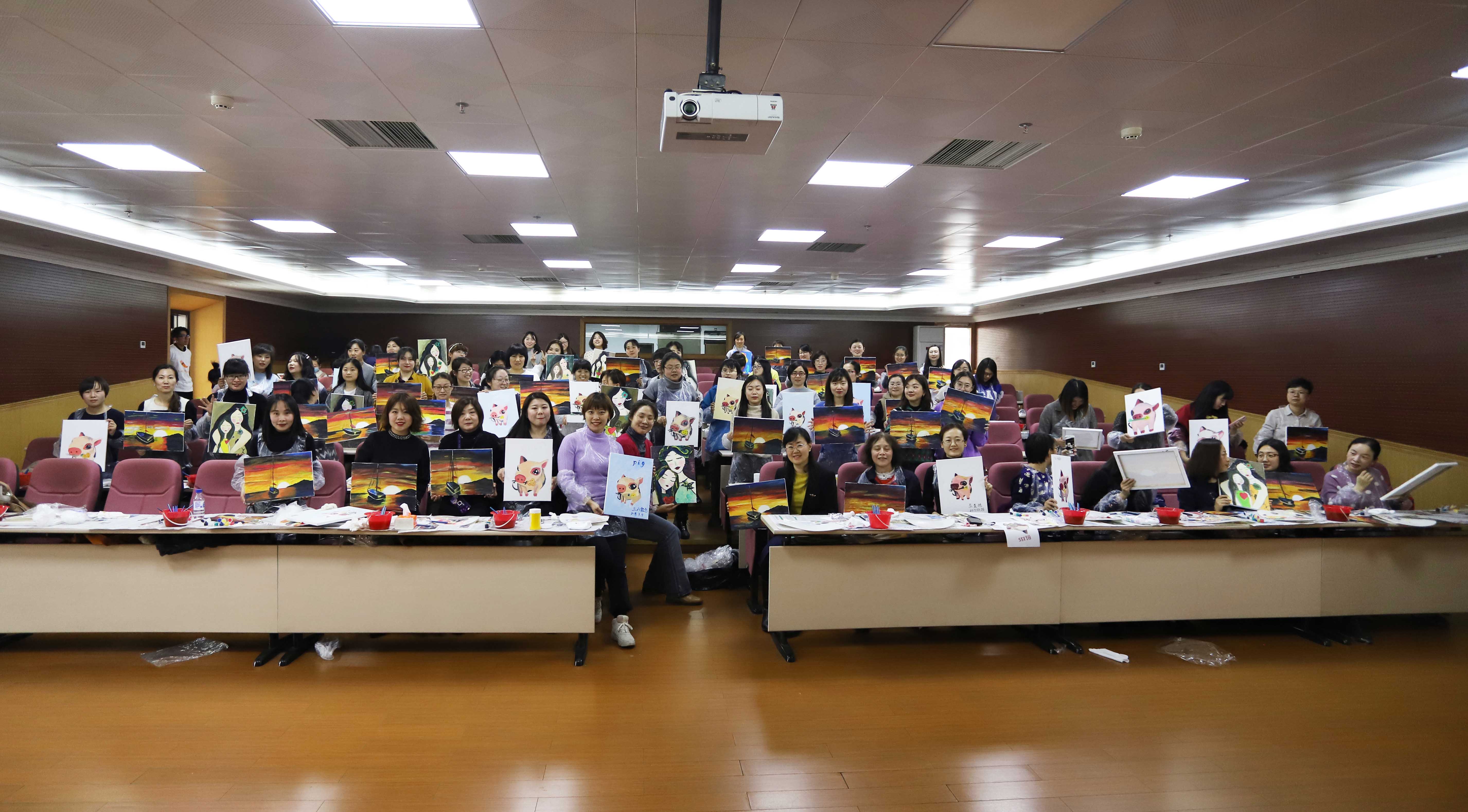 在油画老师的详细讲解下,女职工纷纷开始下笔创作,观察、提笔、构图、修改、上色,时而重笔填色,时而细笔补痕。一张张洁白的画布经过女职工们悉心的绘制和巧妙的颜色组合,变成一幅幅色彩斑斓、秀色别致的绘画作品。望着自己精心绘制的油画作品,女职工们纷纷表示,此次活动带来了满满的成就感,收获了自信,也收获了欢乐。
