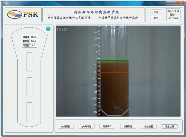 对分离塔监视窗口的树脂液位进行实时自动识别与分析,并输出相关控制信 号至PLC。