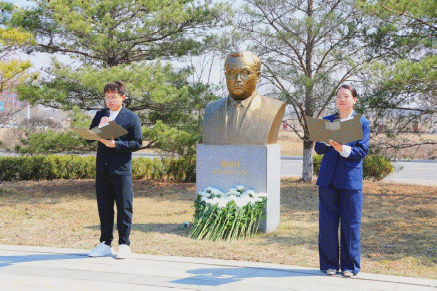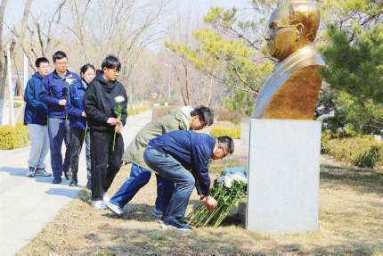 4月1日,所团委代表、人事教育处研究生教育管理人员和研究生代表前往沈阳市铁西劳动公园,向蒋新松塑像献花鞠躬以示缅怀。(党务工作办公室)